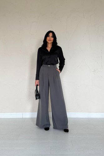 3964 Hafif Dökümlü Saten Gömlek BLacivert