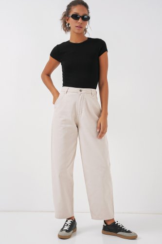 Kadın yüksek bel geniş paça detaylı cepli ithal krep pantolon