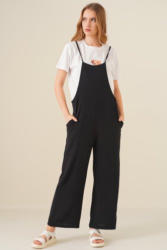 Kadın uzun kollu kare yaka toka ve bel dekoltesi detaylı tulum tulum