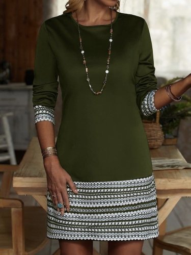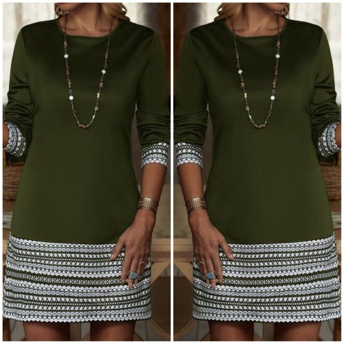 • Kadın uzun kollu bisiklet yaka kol ağzı ve etek ucu baskılı iki iplik elbise