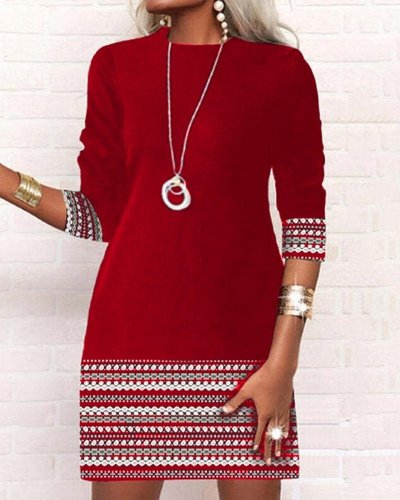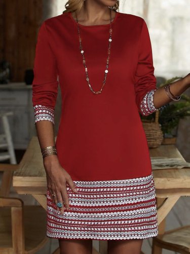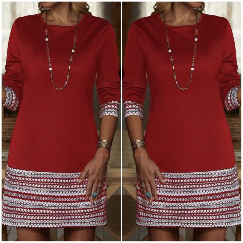 • Kadın uzun kollu bisiklet yaka kol ağzı ve etek ucu baskılı iki iplik elbise