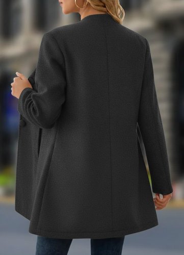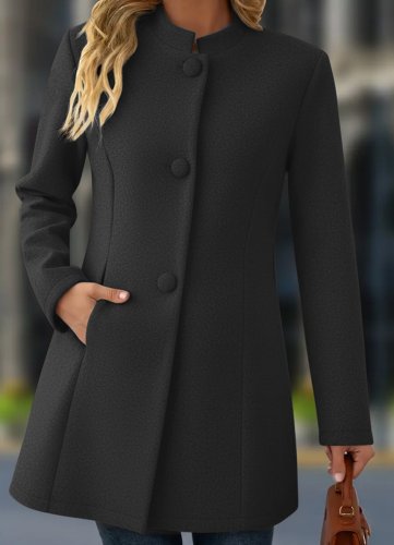 Kadın uzun kollu hakim yakalı önden düğmeli cep detaylı kısa kaşe kaban