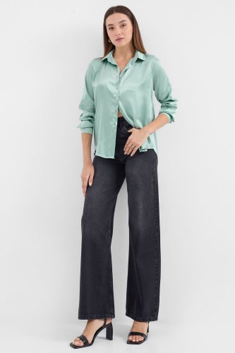 • 3964 Hafif Dökümlü Saten Gömlek Çağla