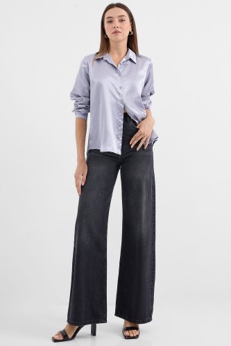 • 3964 Hafif Dökümlü Saten Gömlek Lila