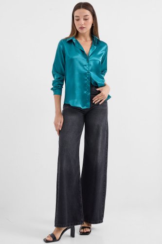 • 3964 Hafif Dökümlü Saten Gömlek AYeşil