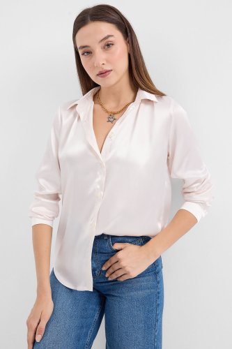 • 3964 Hafif Dökümlü Saten Gömlek Krem