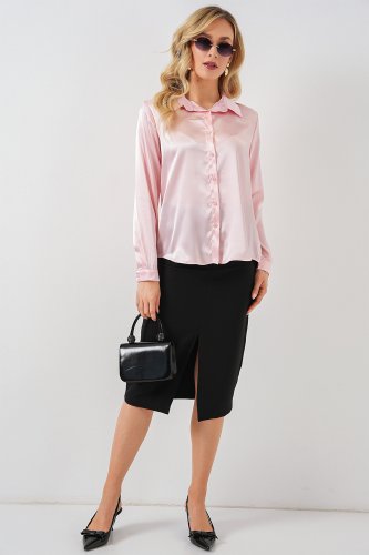 • 3964 Hafif Dökümlü Saten Gömlek Pembe