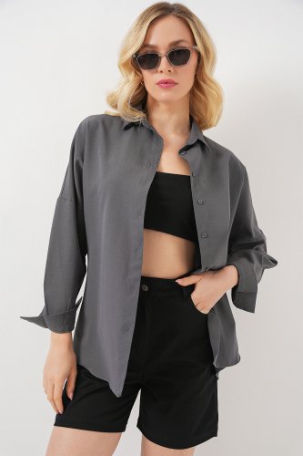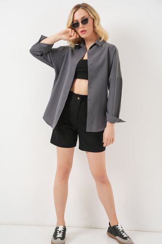 • Gri Düz Oversize Uzun Basic Gömlek 3900
