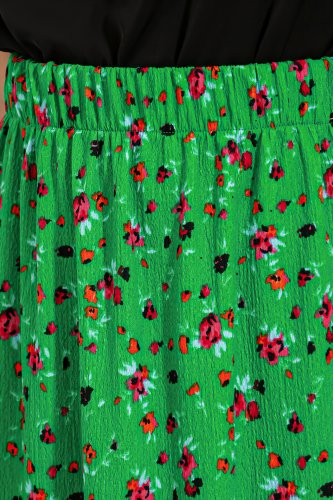 Yeşil Çiçek Desenli Uzun Örme Etek 1886