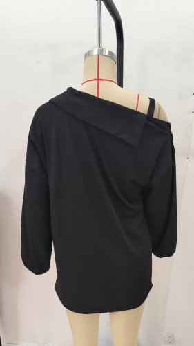 • Kadın tek omuzdan açık askılı uzun kollu yakalı önden düğmeli gömlek