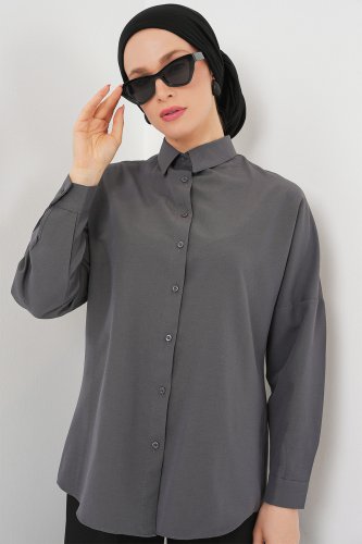 • 103901 Oversize Basic Tesettür Gömlek Gri