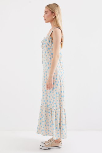 • 2237 Desenli Askılı Viskon Elbise Mavi