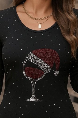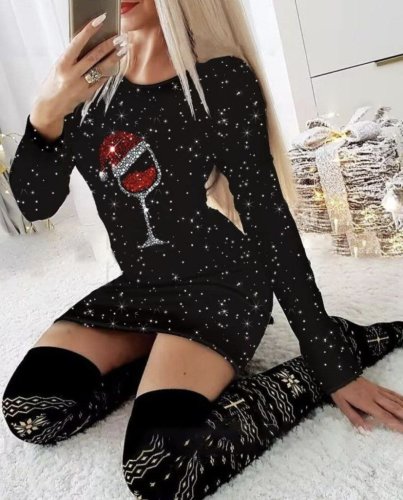 • Kadın uzun kollu taş kadeh baskı dalgıç mini boy elbise