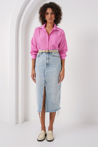 • 20153 Tek Cepli Oversize Keten Gömlek Pembe