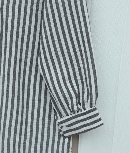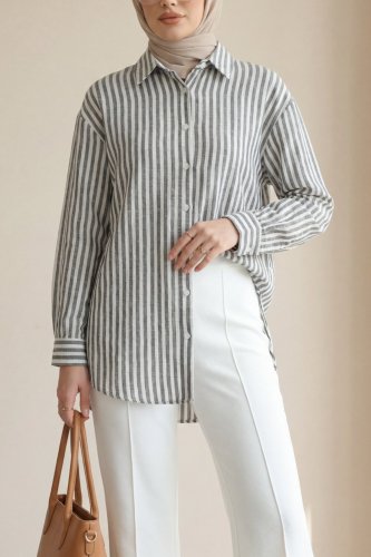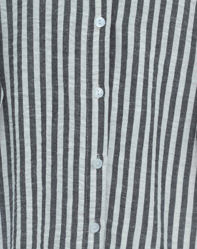 • Boydan Düğmeli Çizgili Keten Gömlek Siyah