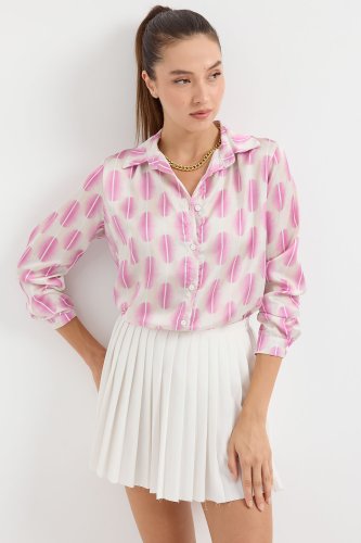 3964 Hafif Dökümlü Saten Gömlek BPembe